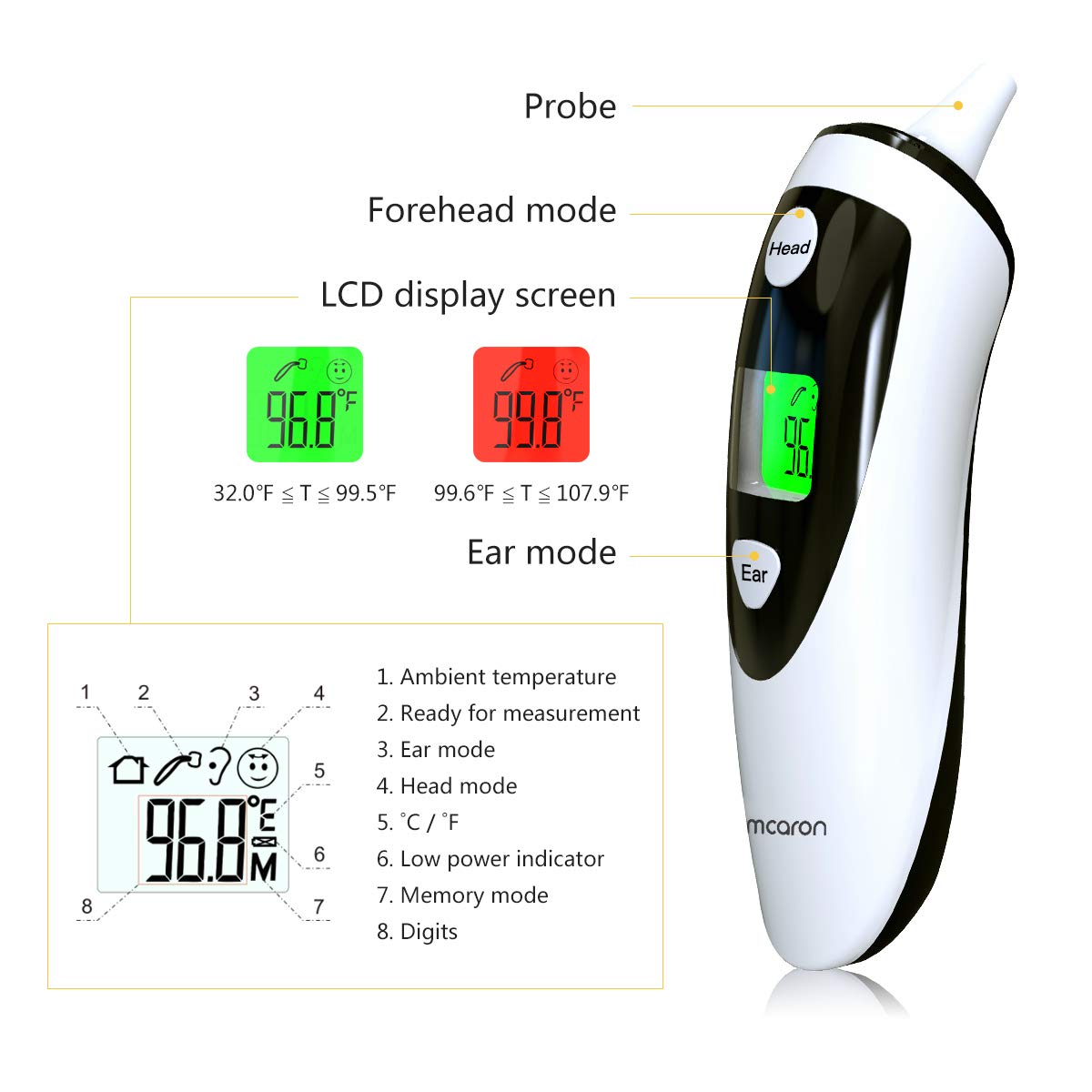 Forehead Thermometer for Adults Baby Infrared Thermometer Forehead for Fever Digital Thermometer Professional Thermometer with Fever Alarm, Forehead and Ear Thermometer for Kids and Adults Surface
