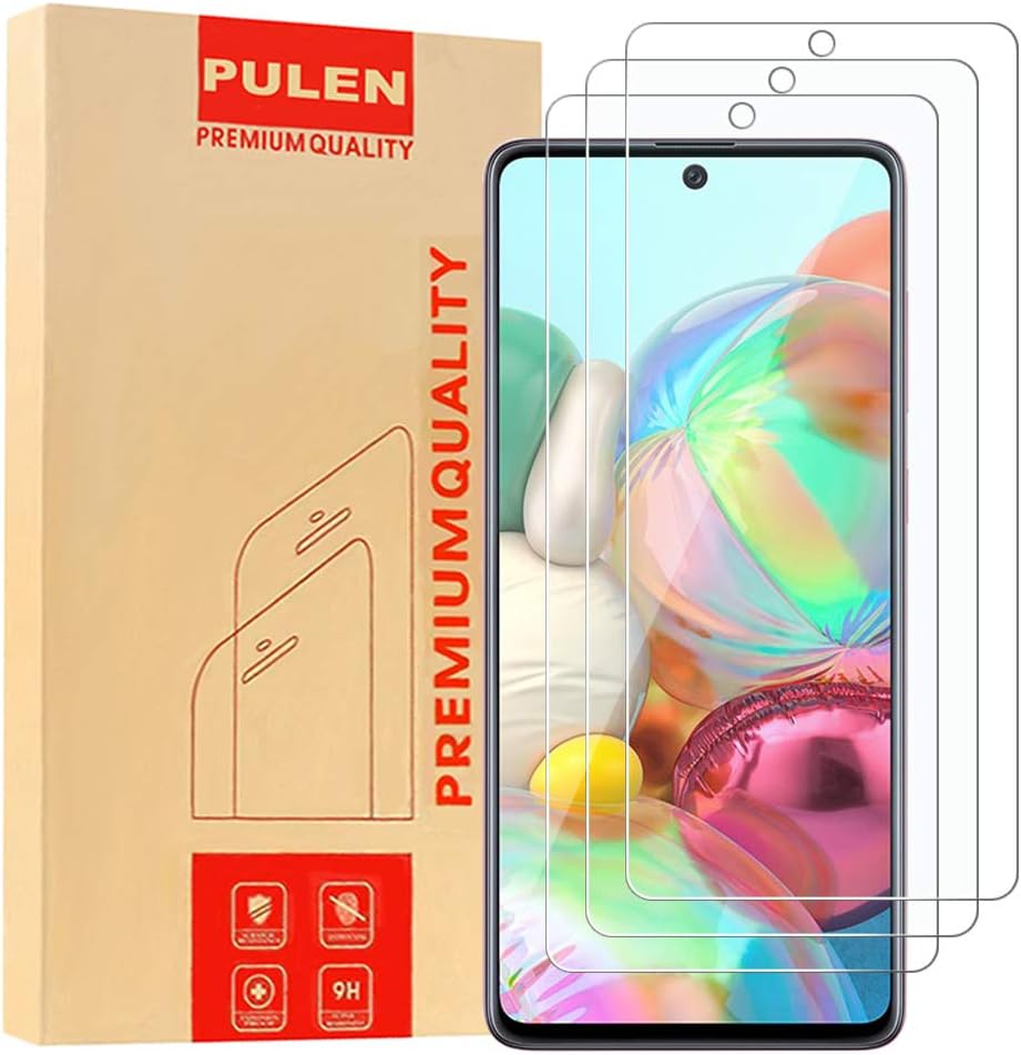 [3-Pack] PULEN Screen Protector for Samsung Galaxy A71 Tempered Glass,HD Clear Scratch Resistant Bubble Free Anti-Fingerprints 9H Hardness